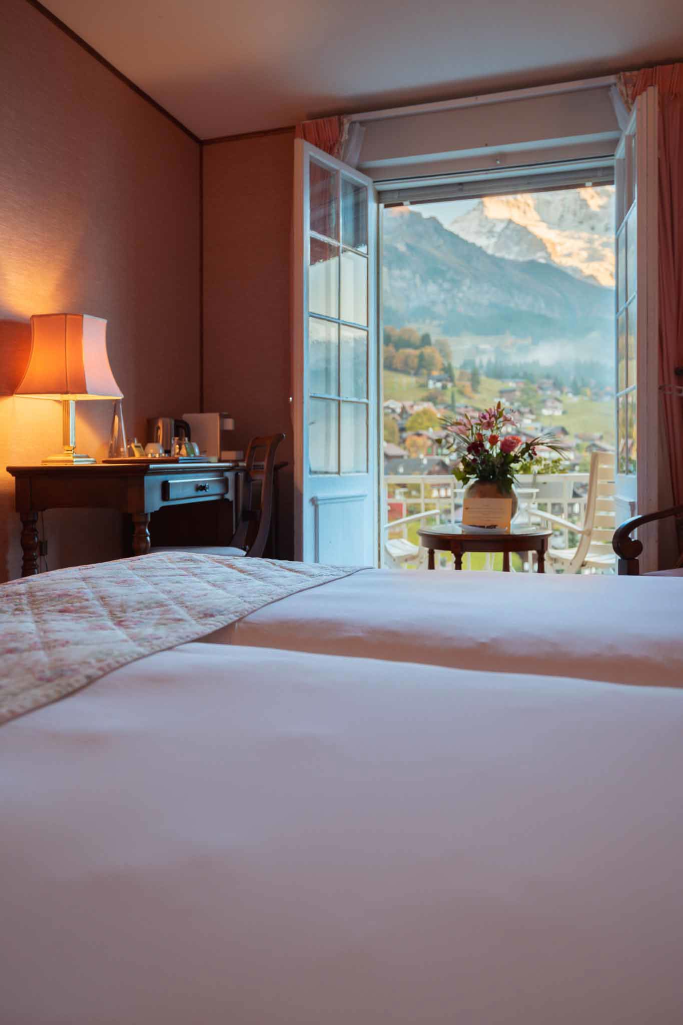 Découvrez le charme de nos chambres doubles classiques, offrant 22 m² d’espace accueillant conçu pour la détente et le confort. Dotée de lits jumeaux (0,90 m x 2 m), chaque chambre dispose d’un balcon privé, où vous pourrez profiter de la vue imprenable sur les sommets majestueux de la région de la Jungfrau ou la vallée calme de Lauterbrunnen.